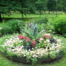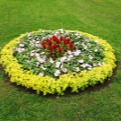 In einem Kreis empfiehlt es sich, nicht zu hohe Sorten zu pflanzen, die sich voneinander und vom Kern der Zusammensetzung in der Blütenfarbe unterscheiden.
