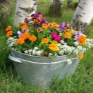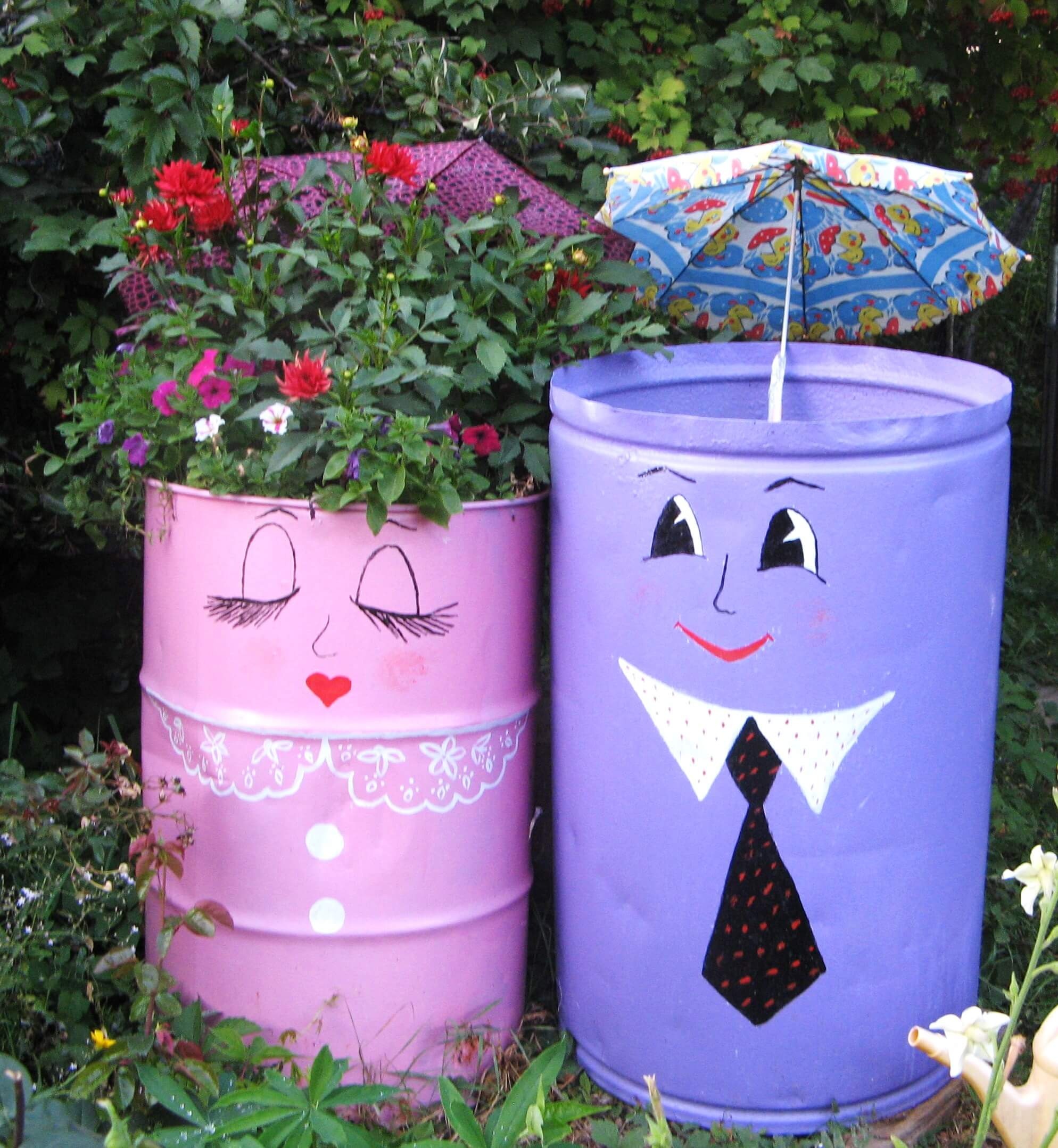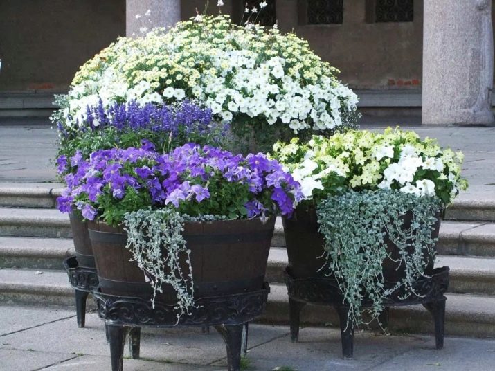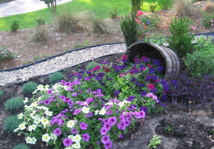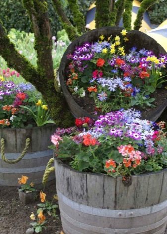 Fortsetzung der Konversation über sekundäre Rohstoffe in der Gestaltung von Blumenbeeten, sollten Sie auf die Eisenfässer achten; ähnliche Behälter sind perfekt für Lobelien und andere Farben mit einem nicht zu anspruchsvollen "Charakter".