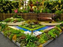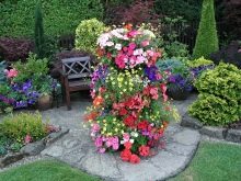 Fachleute empfehlen Überlegen Sie zunächst, wo sich das wichtigste Blumenbeet (Orchester) befindet, und bereiten Sie erst dann die Projekte aller anderen vor. Wenn daneben ein Rasen ist, ist es ratsam, die Blumenarrangements darüber um 0,15-0,2 m anzuheben.Ein guter Schritt ist, die Blumenbeete direkt auf den Gartenplattformen oder Gebäuden zu platzieren. Die Kombination mit kleinen architektonischen Formen kann auch gut aussehen, aber es ist besser, sie Spezialisten anzuvertrauen, weil ein solches Design komplizierter ist.