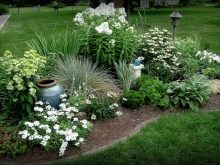 Um keine Fehler zu machen, sollten Sie Pflanzen zum Anpflanzen ausschließlich in Containern erwerben. Es ist besser, Stauden im Frühling zu pflanzen, und das Loch ist genau das gleiche wie die Größe des Komas des Bodens, zusammen mit den Wurzeln, die es durchbohren. Haben Sie keine Angst, mit Produkten zu experimentieren, die bei der Gestaltung von Blumenbeeten verwendet werden.