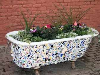 Die Verwendung von Gusseisen hat sowohl in praktischer als auch in ästhetischer Hinsicht große Vorteile. Um die scheinbare Langeweile und Inexpressivität loszuwerden, reicht es, alte Gerichte zu malen. Wie genau Sie dies tun, entscheiden Sie selbst - die Möglichkeiten sind groß und Sie können fast jedes Bild erstellen, das Sie verwenden möchten. Bitte beachten Sie das Designer verurteilen nicht die Verwendung von gusseisernen Tanks verschiedener Typen und Farben, außerdem genehmigen sie nur solch einen außergewöhnlichen Kurs.
