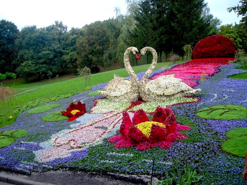 Die ungewöhnliche Form ist zum größten Teil an den Blumenbeeten befestigt, so dass sie die Aufmerksamkeit auf sich ziehen und zu den visuellen Zentren der Kompositionen werden. Auf städtischen Zierpfaden und in Parkanlagen ist eine solche Geometrie sehr weit verbreitet, sie betont den künstlichen Ursprung der Landschaft und ihre stilistische Strenge.
