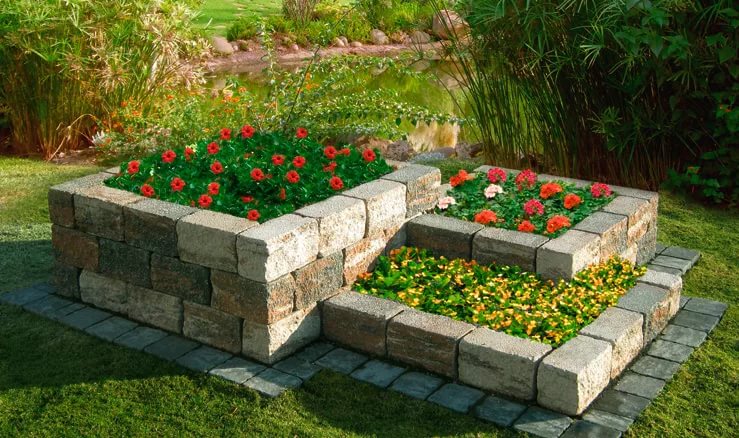 Effektive Lösung dieser Aufgaben mit nicht zu hohen Pflanzungen sind Steinblöcke, gleichzeitig verhindern sie das Wachstum von Pflanzen auf Freiflächen und Wegen.Die gleiche Funktion kann von Ziegeln durchgeführt werden, aber Holzstrukturen können nicht bewältigen, sie kollabieren zu schnell.