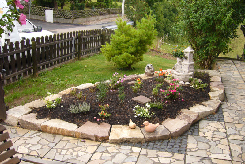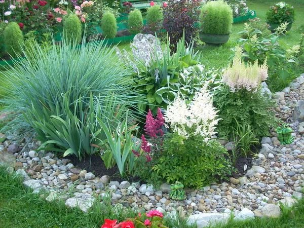 Die felsigen Blumenbeete, besser bekannt als Steingärten, gewinnen schnell an Popularität. Solche Lösungen ermöglichen es, den Raum um die gleiche Art von Vorstadtgebäuden zu diversifizieren, die Verbesserung zu vervollständigen und das Erscheinungsbild einzigartig zu machen. Aber bedenke das Steingärten mit einer Behausung zusammenzubringen, kann nur bis zu einer gewissen Grenze gehen. Darüber hinaus zeigt die wahre Schönheit eines Steinbetts nur mit einer Fülle von Sonne. Höhere Pflanzen werden normalerweise in der Mitte gepflanzt, und relativ niedrige werden entlang des Umfangs platziert, um einen "Pyramideneffekt" zu bilden.
