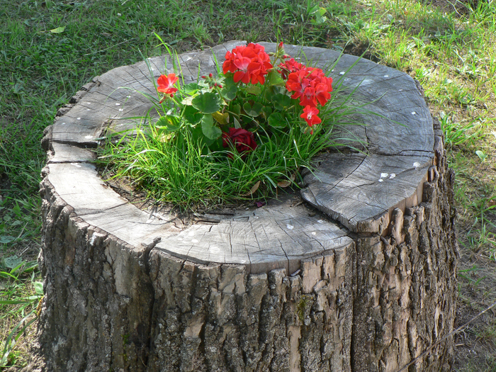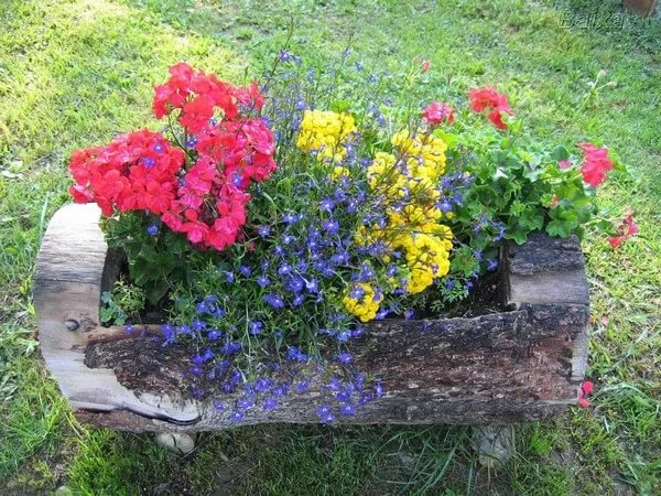 Die ursprünglichen Blumenbeete bestehen aus Baumstämmen, aber ihr minimaler Durchmesser muss mindestens 0,5 m betragen, in einem kleineren Baumstamm ist nicht genug Platz für den Blumenanbau.Um Geld zu sparen, hilft eine Kombination aus einer Blockbox, deren Enden mit Sägen überklebt sind. An die Stümpfe, mit denen improvisierte Beete angelegt werden, werden ausreichend hohe Anforderungen gestellt. Sehr alter Hanf wird schnell durch Gießen zerstört, und das sollte beachtet werden die Überreste von Bäumen normaler Größe passen nicht, nur die größten Stümpfe sind akzeptabel.