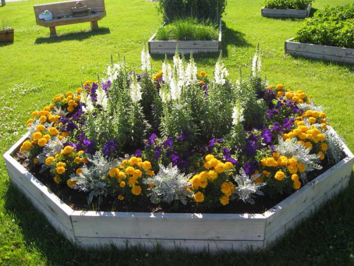 Einen Blumengarten und ein Blumenbeet zu machen, sind zwei verschiedene Dinge, obwohl unerfahrene Landbesitzer oft zwei enge Begriffe verwechseln oder sie nicht richtig unterscheiden können. Ein klassisches Blumenbeet zeichnet sich durch eine geometrisch korrekte Konfiguration und eine geschlossene Konturlinie aus; fast immer erhebt es sich über das umliegende Gebiet. Wichtig ist, dass im Hof in den Blumenbeeten fast immer einjährige Pflanzen gepflanzt werden, Biennalen und Stauden sind dort sehr selten anzutreffen. Pflücken Sie die Pflanzen und beachten Sie, dass sie immer gleichzeitig blühen sollten.