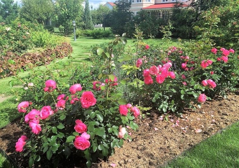 Wählen Sie immer solche Stellen, wo es keine Zugluft gibt, wo der Boden aus Lehm mit einer hochwertigen natürlichen Drainage besteht. Das Säure-Basen-Gleichgewicht des Bodens ist neutral oder schwach sauer. Achten Sie darauf, dass einzelne Rosensorten keine kontinuierliche Sonneneinstrahlung tolerieren. Für sie lohnt es sich, schwache Penumbra mitzunehmen. Legen Sie niemals Blumen mit ähnlichen Tonalitäten neben sich, sie sollten sich voneinander unterscheiden. Eine gute Option, die keinen Schnickschnack erfordert, ist das Pflanzen von 3 oder 4 gleichfarbigen Blumen in Kombination mit anderen Pflanzen, die diese betonen.