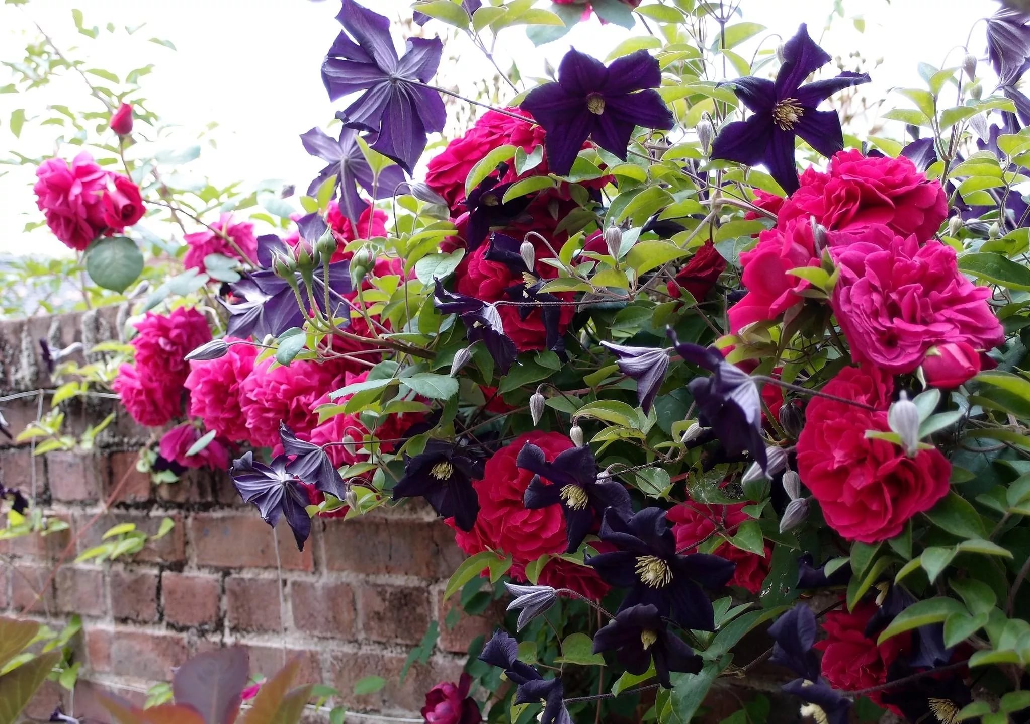 Eine weitere Möglichkeit, den Raum zu dekorieren, ist die "Blütenwelle" der Clematis, die einen Baumstamm umschließen und bis zu 90 Tage lang ununterbrochen blühen kann.