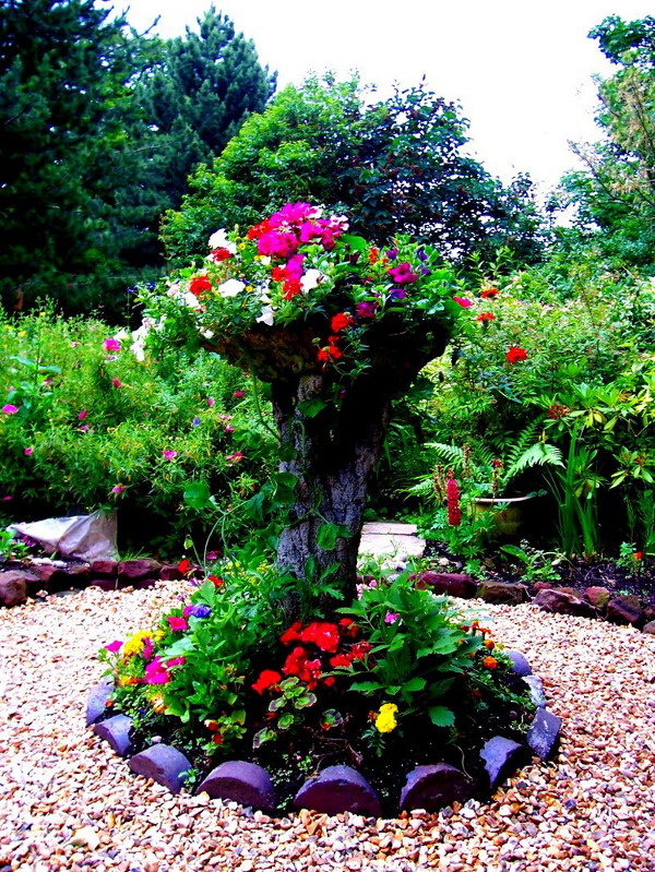 In den Fällen, in denen ein alter und scheinbar unnötiger Baum auf dem Grundstück wächst, ist das Ergebnis noch attraktiver. Es ist genug 10 - 12 Hängetöpfe mit Petunien, um das ursprüngliche Aussehen des Blumenbeets zu vervollständigen. Tatsächlich tauchen um uns herum interessantere Lösungen auf, als es scheint. Das einzige Problem ist es, sie zu finden und ästhetische Qualitäten in dem üblichsten Thema zu sehen.