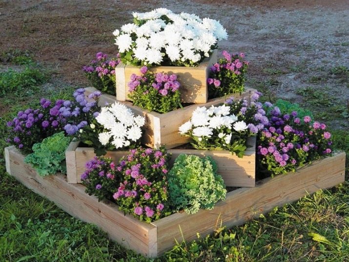 Blumenbeete, die an Wänden oder Zäunen angebracht sind, werden entlang solcher Strukturen mit den meisten großen Kulturen ausgesät. Wenn man jedoch herumlaufen kann, wird in der Mitte eine hohe Ebene geschaffen, es wird möglich, bereits vorhandene Landungen und Gebäude in die Komposition aufzunehmen.