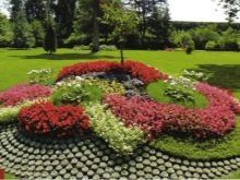 - Arabesken- Dies sind niedrig wachsende Pflanzenarten, die mit originalen geometrischen Formen bepflanzt sind. Sie sind nicht nur aus Blumen, sondern auch aus Steinen, Kies, kleinen Kieselsteinen. Diese Blumenbeete sind zentral für den Garten;
