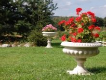 - Vasen - geeignet für den Anbau von eleganten Einjährigen in Kombination mit Kletterpflanzen. Blumentöpfe haben auf Plattformen, Terrassen und Höfen, sie können an einen anderen Ort übertragen werden;