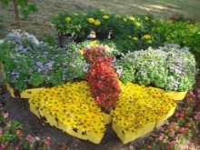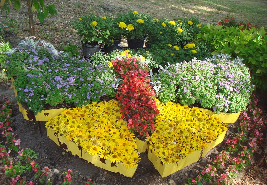 Solche originellen Blumenbeete erfreuen ihren Besitzer mit hellen Farben und erfreuen bei allen Gästen, Verwandten und Passanten.