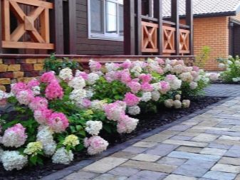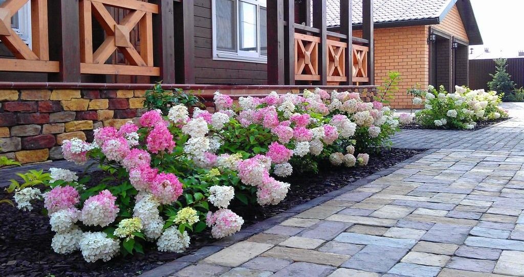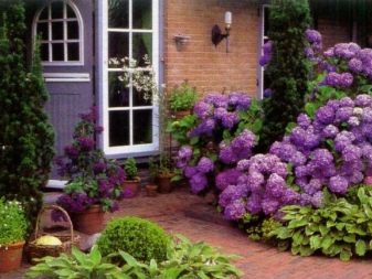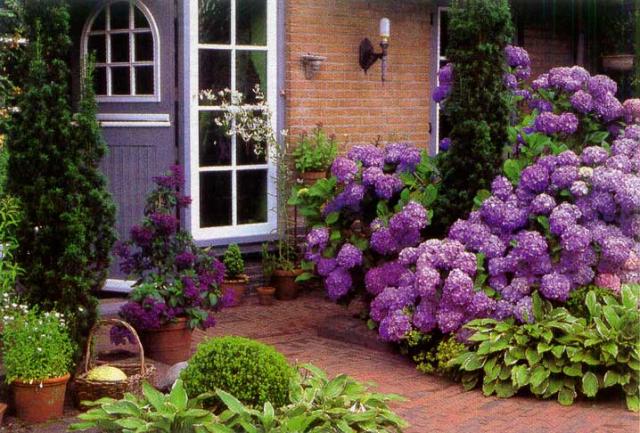 - Vorgarten - das Gebiet, das das Haus von der Straße trennt. In der Regel ist es mit üppigen Büschen und frühjahrsblütigen und einjährigen Pflanzen bepflanzt. Voraussetzung: Der Vorgarten sollte sowohl von der Straße als auch von den Fenstern des Hauses aus gut zu sehen sein. In diesem Fall verwendete Pfingstrosen, Hortensien, Flieder, Astern;