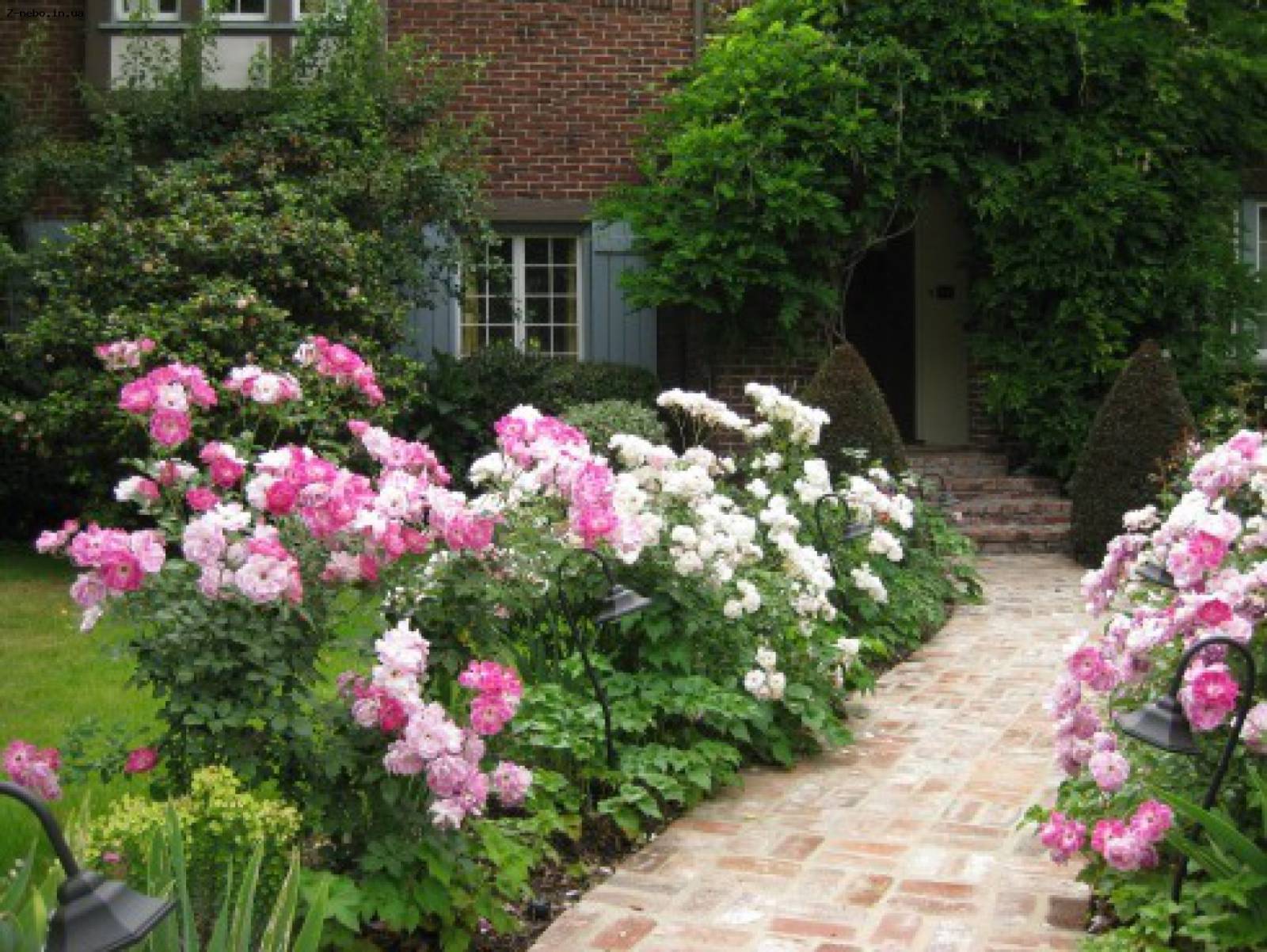 Oft auf den Seiten finden Sie Rosenkränze, die aus luxuriösen Rosen verschiedener Schattierungen entstehen. Diese Pflanzen blühen am besten in einem gut beleuchteten Bereich, aber beachten Sie, dass es vor Zugluft geschützt werden sollte. Ideal, wenn der Rosengarten an der Südseite des Gartens liegt und auf drei Seiten von Laubbäumen umgeben istaber sie sollten den Blumengarten nicht beschatten. Es ist angemessen, den Rosengarten mit anderen Farben zu ergänzen, weniger lebhaft, sie geben der Komposition Vollständigkeit.