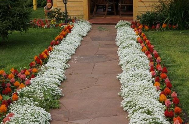 - Rabatka - flache Pflanzung von Blumen entlang von Wegen oder Häusern. Seine Breite beträgt von 40 bis 50 cm, die Länge kann unterschiedlich sein. Hohe Pflanzen haben in der Mitte und an den Rändern verkümmert. Für Ravatok gepflanzter Balsam, Godetia, Ringelblume, Eisenkraut, Portulak und andere Blumen;
