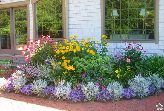 - wählen Sie Blumen, die prächtig und hell blühen, damit Ihr Garten vom Frühling bis zum Spätherbst "lebt";