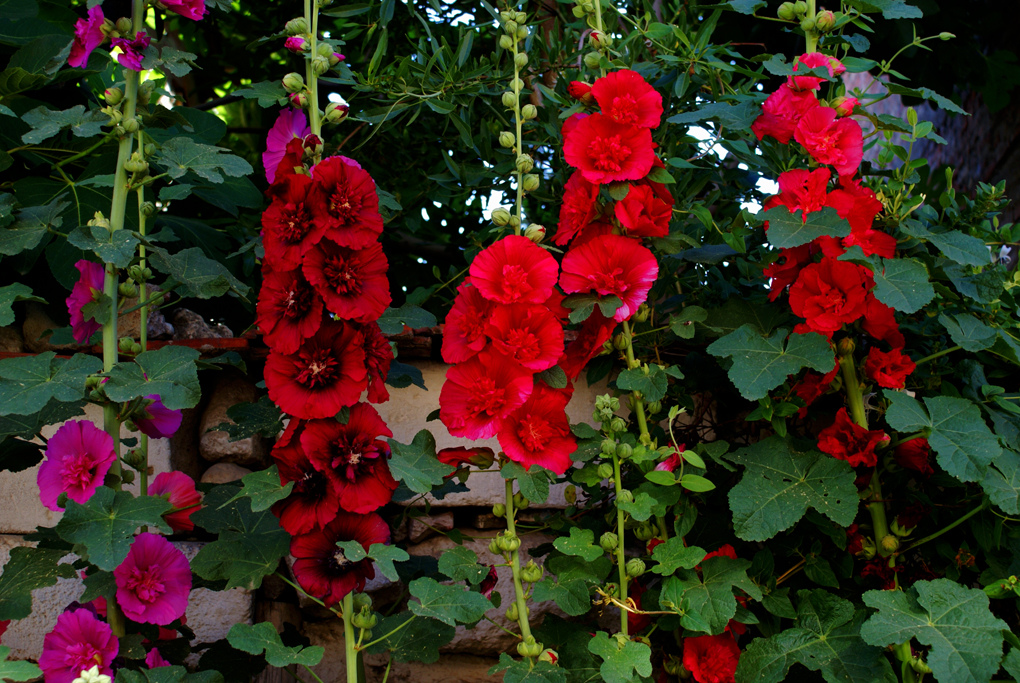 Und schließlich große Pflanzen mit einer Höhe von über 80 cm, die ein unverzichtbares Element eines luxuriösen Inselbeetes sind. Diese Pflanzen umfassen Malve, Stock-Rose, Basilikum, gewundene Sonnenblume.
