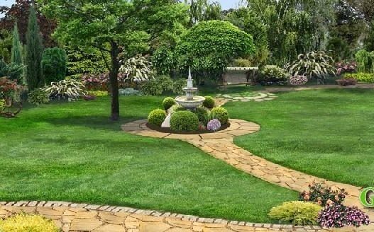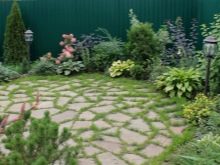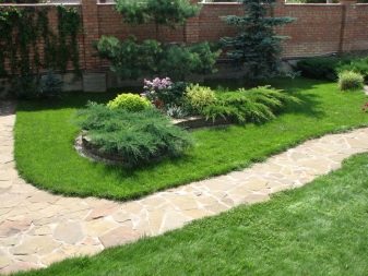 Verschiedene Rasenflächen können miteinander verbunden werden, andere Elemente können mit Gartenwegen erstellt werden, die als eine Art Gerüst dienen, auf dem andere Teile des Grundrisses aufgereiht sind. Die Wahl von Farbe, Material, Vorliebe für einen geraden oder gewundenen Weg wird durch den Stil der Grünfläche und andere Nuancen bestimmt.
