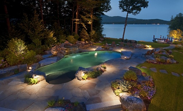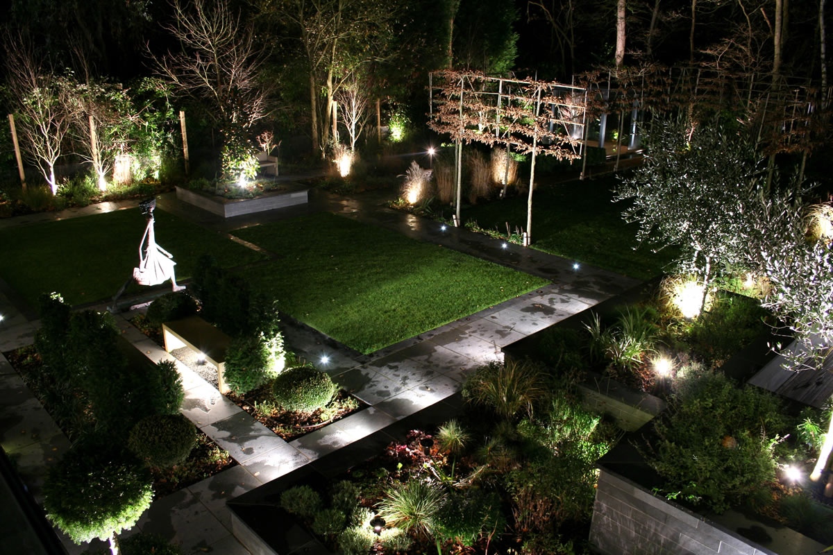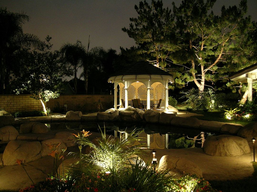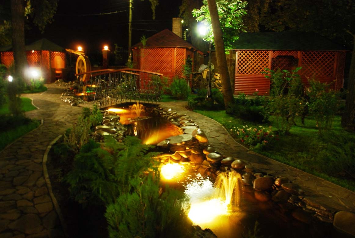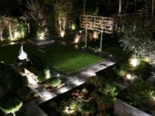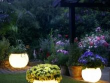 Damit dekorative Elemente zu jeder Tageszeit gleichermaßen gut wahrgenommen werden können, ist es notwendig, eine angemessene Beleuchtung vorzubereiten. Die Verwendung von Laternen ist eine traditionelle Methode, die seit vielen Jahrzehnten entwickelt wurde. Aber auch Experimente sind möglich, wenn beispielsweise ein punktförmiger Scheinwerfer direkt neben einem einzelnen Objekt, einer Pflanze oder einer Komposition erzeugt wird.