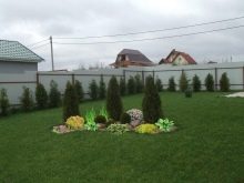 Ornament des Landes kann ein einfacher Rasen sein, ohne irgendwelche Zusätze. Aber es kann ungewöhnlich gemacht werden (in Form eines Hügels).