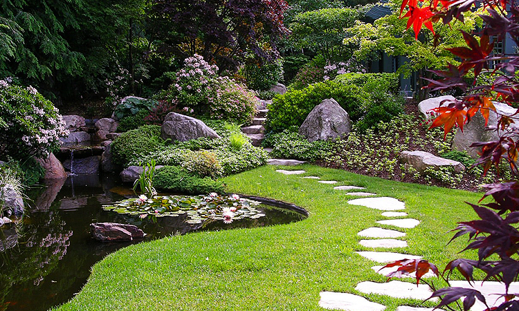 Japanische und chinesische Gärten mögen der Landschaft ähnlich sein, aber es ist viel schwieriger, ihr kompetentes Konzept zu entwickeln. Jedes Element, einschließlich Geoplastik, trägt notwendigerweise einen streng definierten symbolischen Wert, der von östlichen traditionellen Kulturen übernommen wurde. Das Terrain ist so geformt, dass Sie gleichzeitig ruhig nachdenken und emotional entspannen können.