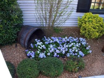 Wenn es keinen Wunsch gibt, einen einheitlichen und monotonen Rasen zu haben, der abrupt sein Gesicht abreißt, wird ein Wechsel des Reliefs dazu beitragen, der Situation einen Elan zu geben. Ein scheinbar umgestürzter Baum, hinter dem sich Büsche mittlerer Höhe befinden, ist ein guter Weg, diese Idee zu verwirklichen.