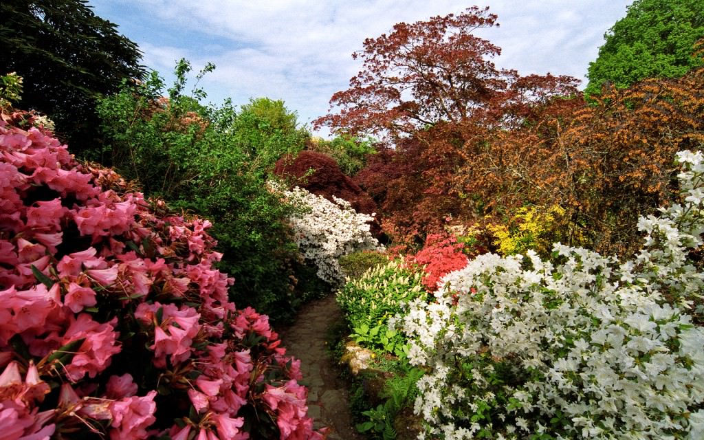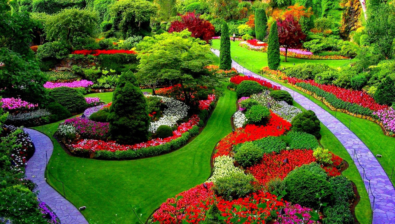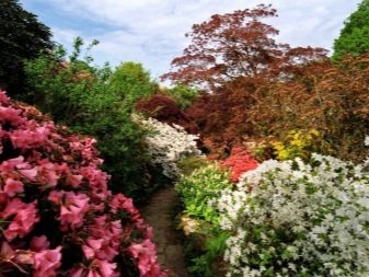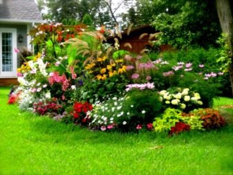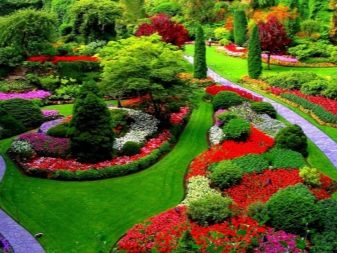 Blumen in einem großen Garten sollten nach Farbe verteilt werden: in einer Gruppe wird eine bestimmte Farbe unterschieden, in der anderen - ein Kontrast Wenn von der Stilistik konzipiert, können Blumen kombiniert werden.