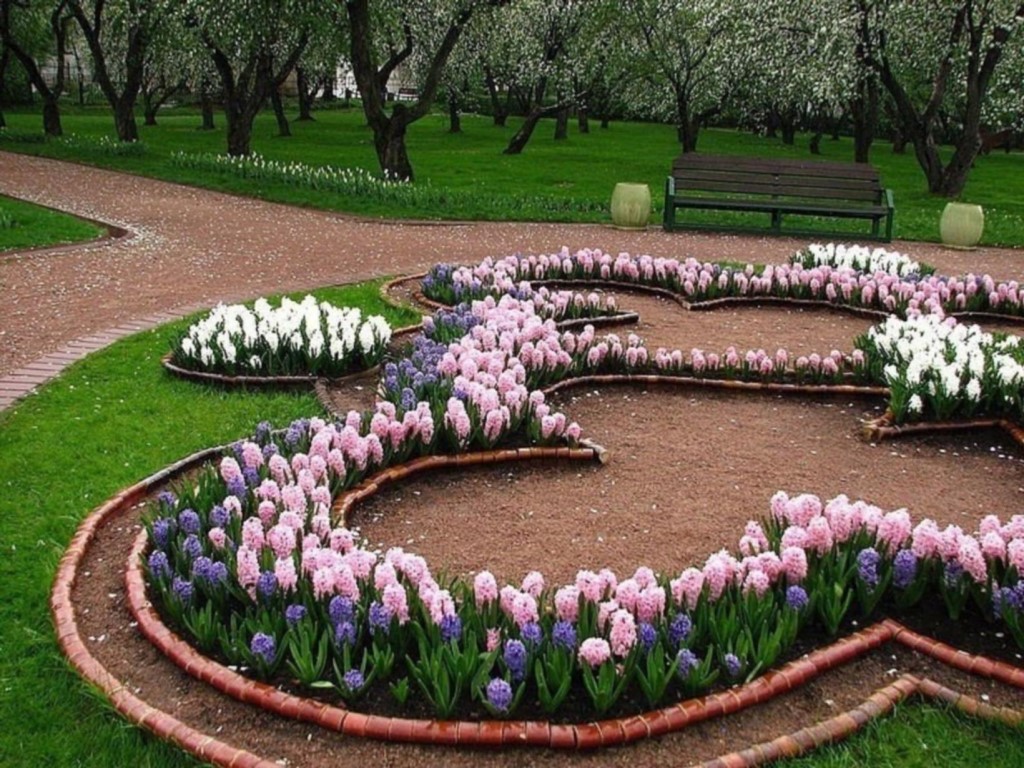 Versuchen Sie, mehr gewundene Wege zu machen, so dass die Zusammensetzung eines großen Gartengrundstücks davon profitieren wird.
