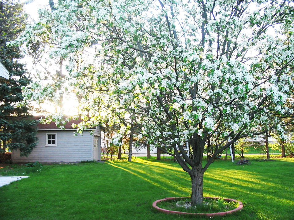 Wenn Sie maximale Schönheit erreichen möchten, um Platz zu sparen und relativ wenig Arbeit zu verrichten, wäre eine ausgezeichnete Lösung, einen gleichmäßigen grünen Rasen zu präparieren, in dessen Mitte ein Baum stehen wird.