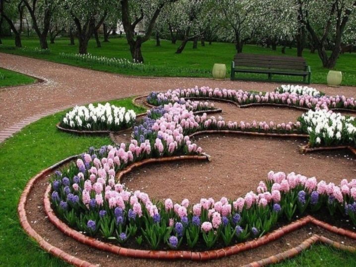Wenn Sie ein Blumenbeet brechen, ist es nicht notwendig, es fest zu machen. Der ursprüngliche Entwurfsstrich wird ein "stechender" Pfad von mittlerer Breite sein, dessen Umfang mit Steinblöcken der gleichen Farbe wie die Außenseite des Blumenbeets bedeckt ist. In einer anderen Ausführungsform scheint sich die Spur unter den Kräuterzusammensetzungen zu lösen. Es zu bemerken, ohne es besonders zu betrachten, wird ziemlich schwierig sein. Diese Lösung sieht besonders gut aus, wenn sich kontrastreiche Betten gegenseitig ersetzen.