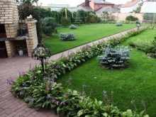 Besonderes Augenmerk sollte auf die Gestaltung des Rasens gelegt werden, der die Grundlage für das gesamte Ferienhaus bildet. Wenn Sie zum ersten Mal Gärten einrichten, sollten Sie eine übliche, universelle Art der Landung eines Rasens wählen. Vergessen Sie nicht, dass Sie vor der Grundlegung des Grundstücks den Boden richtig vorbereiten müssen (Graben, Nivellieren, Stampfen).