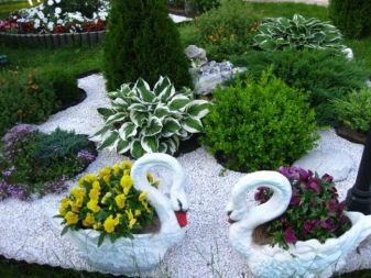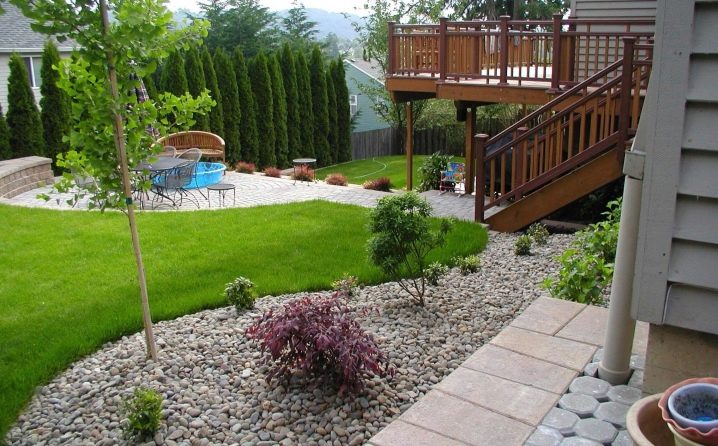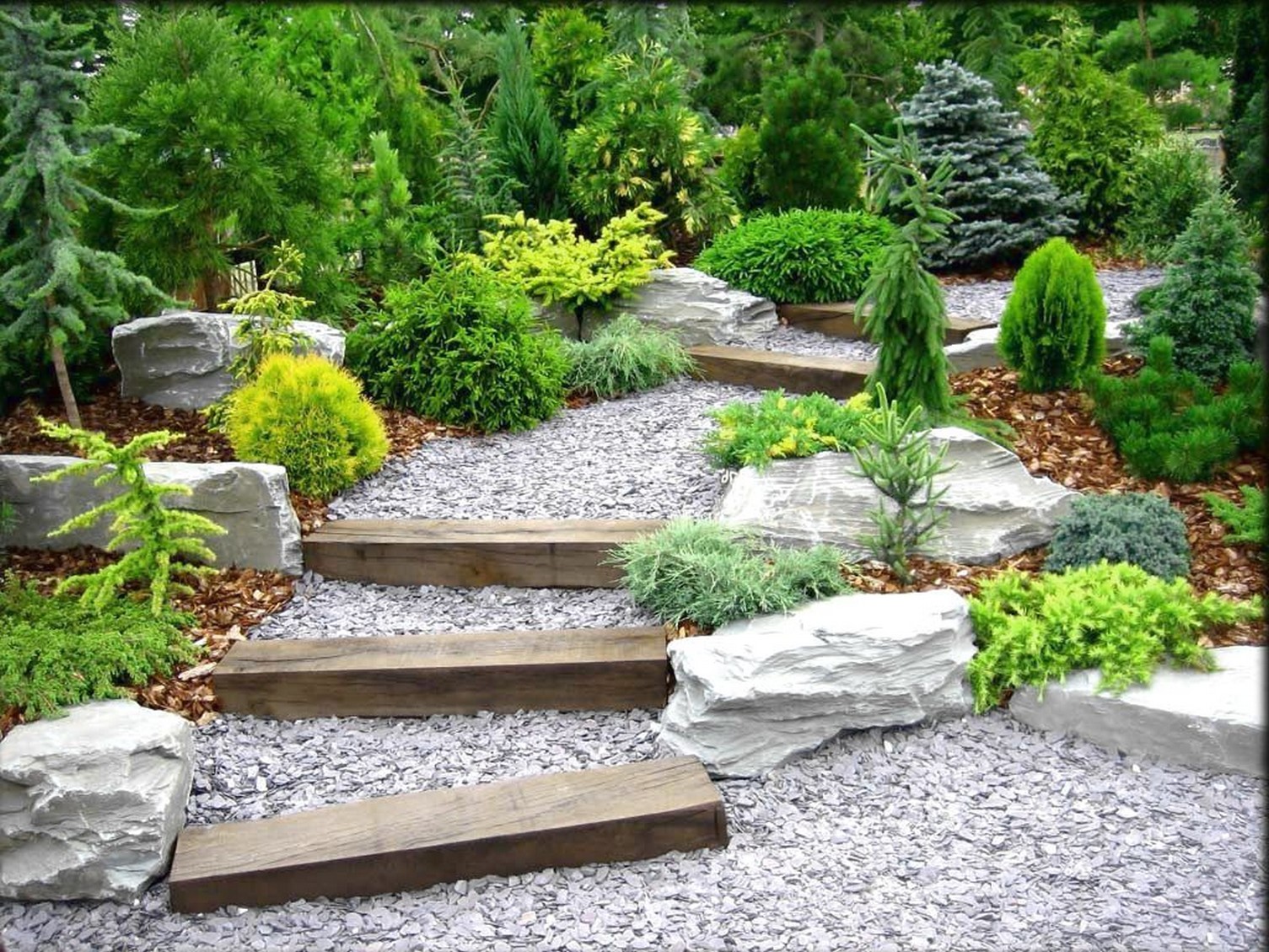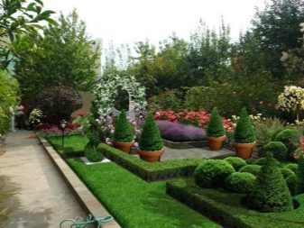 - Die Hauptsache ist, dass zu viele große Anpflanzungen (Bäume, Sträucher) das ganze Design ruinieren können, den Garten überladen und unpassend machen. Viele Experten empfehlen die Verwendung von kleinen Nadelbäumen (Zwergbäumen) in der Gestaltung des Standortes.