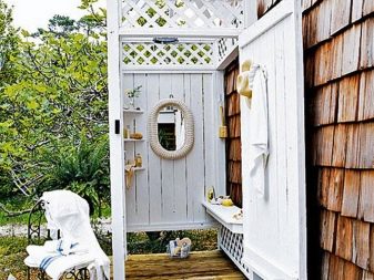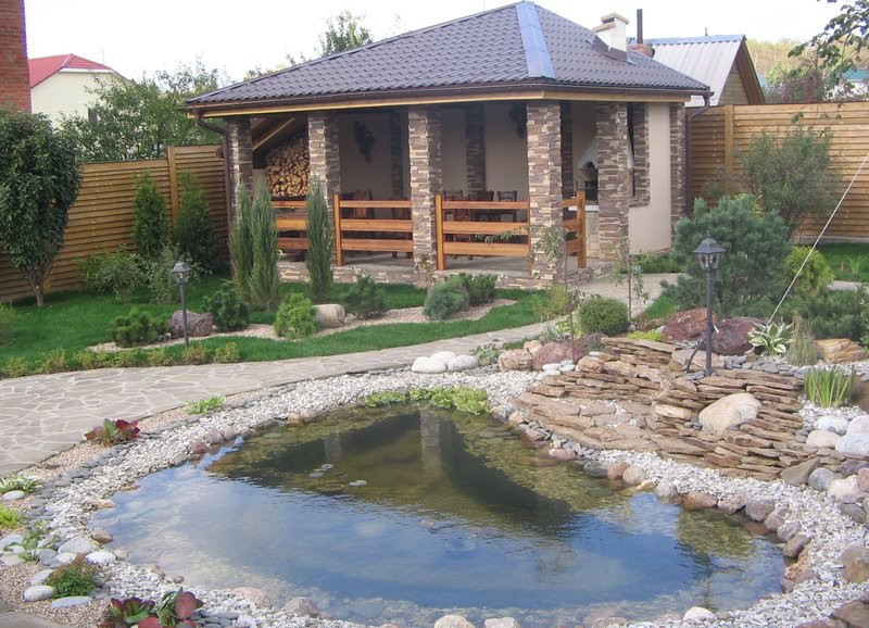 - Es ist auch möglich, verschiedene Gebäude auf dem Gelände des Gartengrundstücks zu platzieren (Sommerdusche, Badehaus, Pavillon, künstlich angelegte Stauseen). Allerdings sollte man bei solchen Räumen den Platz nicht zu sehr aufstauen, da sonst das Gesamtbild der Gartenanlage stark beeinträchtigt werden kann.