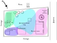 - Übertragen Sie zunächst alle vorhandenen Gebäude auf den Plan und benennen Sie die vorgesehenen Gebäude mit einer gepunkteten Linie. Wenn Sie eine freie Fläche zur Verfügung haben, sollten große Gebäude unter Berücksichtigung der Himmelsrichtungen und der Windrose geplant werden. Zum Beispiel sollte der Schatten des Hauses tagsüber nicht auf die Stelle fallen, besonders wenn Sie verschiedene Gemüsesorten züchten möchten. Gewerbebauten (Scheune, Garage, Bad) sind besser am Rand des Geländes platziert. Neben der Hauptfunktion können sie als Zaun verwendet werden, und sie können Sie auch vor den lästigen Blicken der Nachbarn verstecken. Es ist sinnvoller, einen Spielplatz so einzurichten, dass keine gefährlichen, brechenden Objekte (Glasgewächshaus, Pool, Brunnen) in der Nähe sind und von zu Hause aus betrachtet werden können.