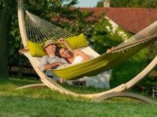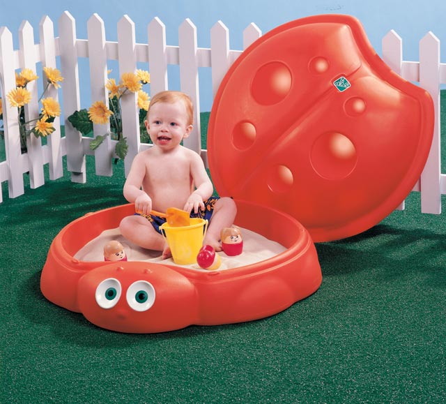 - Für Kinder genügt es, ein kleines Stück Land zuzuteilen, auf dem sich ein transportabler Sandkasten und ein aufblasbarer Pool befinden. Bei Bedarf ist das alles einfach zusammenzusetzen. Oder Sie können einen kleinen Sportkomplex mit Schaukeln und anderen Objekten bauen (oder kaufen Sie bereits fertig): ihre Abmessungen beginnen bei 1,5-2 qm.