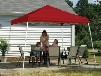 - Wenn der Standort bereits bepflanzt ist und kein Platz für einen stationären Pavillon vorhanden ist, können Sie ein Klappzelt aufstellen (in Fachgeschäften ist die Auswahl riesig).