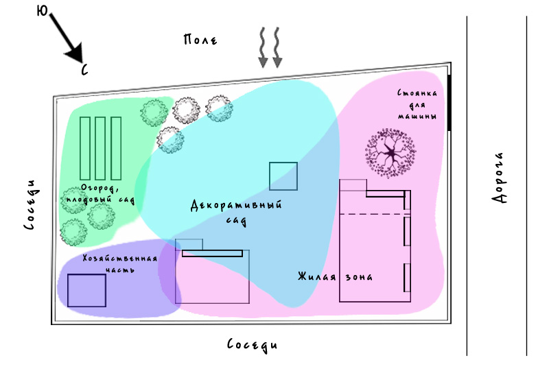 Wie man den Platz des Ferienhauses richtig organisiert, eine Fläche von 6 Hektar, siehe unten.