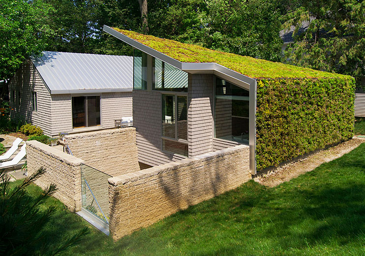 Sie können die Erfahrung von europäischen Designern betrachten und einen Rasen oder Blumenbeete auf dem Dach des Hauses oder anderer Gebäude organisieren.