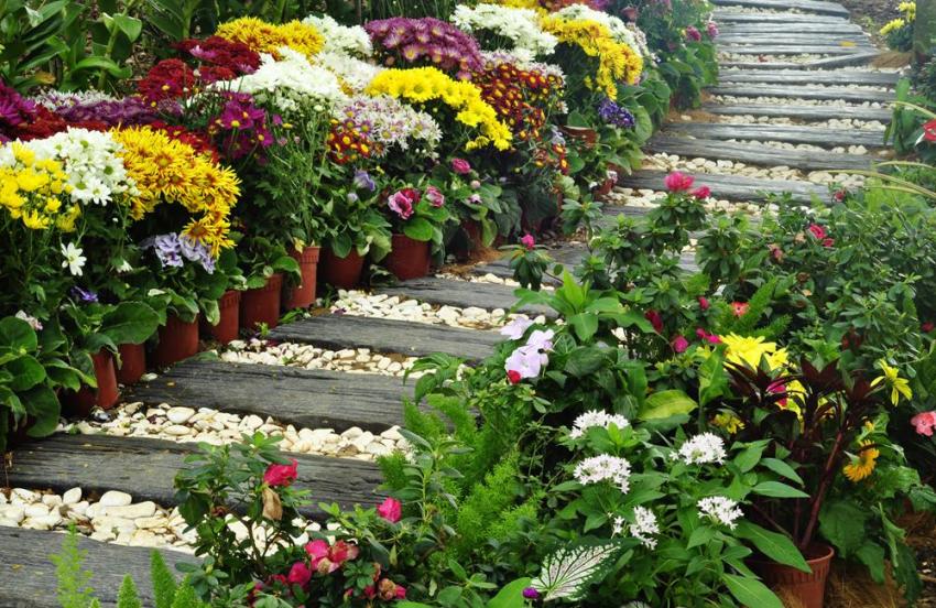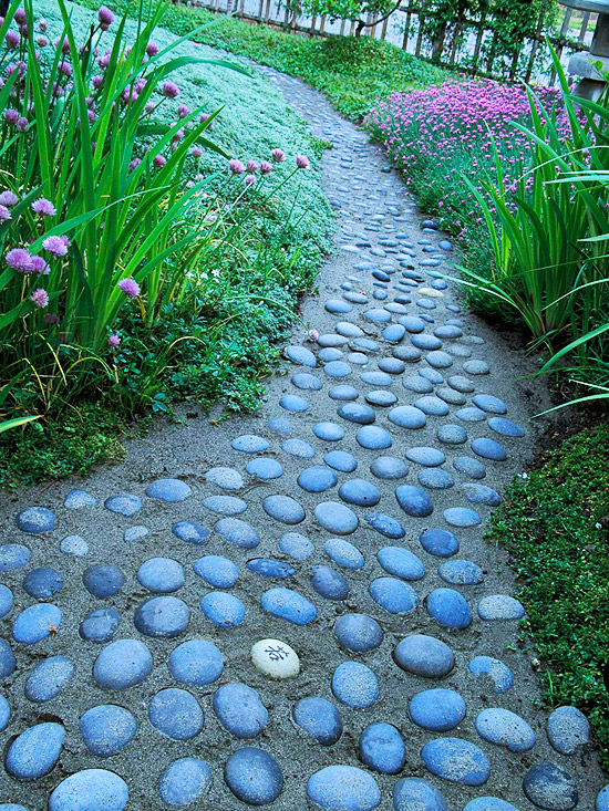 Blur oder glätten die Grenzen der Gartenwege können Blumenpflanzung sein (für einen Anfang, experimentieren mit einjährigen Pflanzen, und wenn Sie die perfekte Form finden, können Sie Stauden pflanzen. Seien Sie vorsichtig mit Blumen in verschiedenen Farben. Betten mit verschiedenen Schattierungen der gleichen Farbe wird harmonischer aussehen.