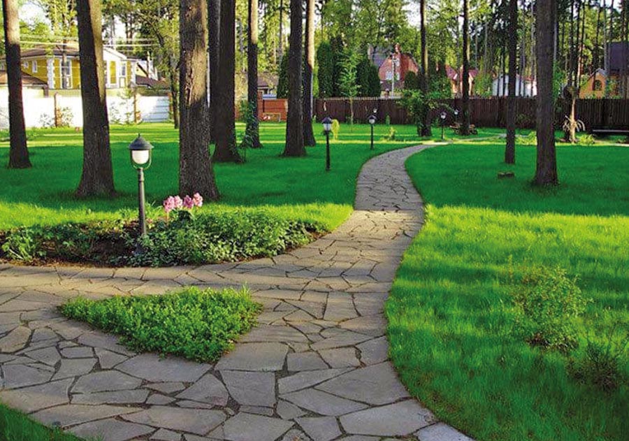 Achten Sie besonders auf die Erstellung von Länderpfaden. Wie oben erwähnt, sollte ihre Form nicht linear und vollkommen flach sein. Es ist besser, wenn es eine gekrümmte, gewundene, gebogene Form ist. Das Material hat auch nicht die letzte Bedeutung: Natürliche Texturen, wie Holz, Stein, Rasengras, sind mehr vorzuziehen als städtische Texturen (Beton, Pflastersteine).