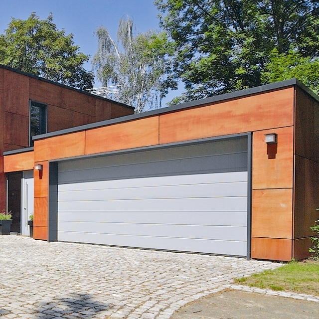 Sektions-Hebeanlagen werden immer beliebter. Die Leinwand besteht aus verbundenen Abschnitten, die zum Zeitpunkt des Anhebens des Tores hintereinander liegen. Diese Art der Öffnung spart viel Platz. Die Verwaltung erfolgt automatisch oder manuell. Die Leinwand besteht normalerweise aus Aluminium.