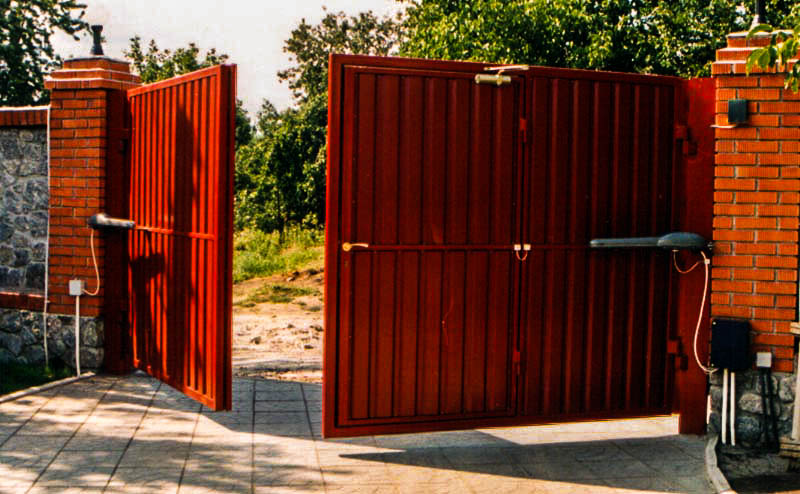 Produkte mit zwei ausschwenkbaren Klappen werden als zweiflügelige oder zweiflügelige Klappen bezeichnet. Rudersysteme bestehen aus den Tüchern, die an einer vertikalen Achse befestigen und drehen. Dieser Entwurf wird ziemlich häufig benutzt.Tore werden in Fabriken, Garagen, Höfen und auf dem Land installiert.