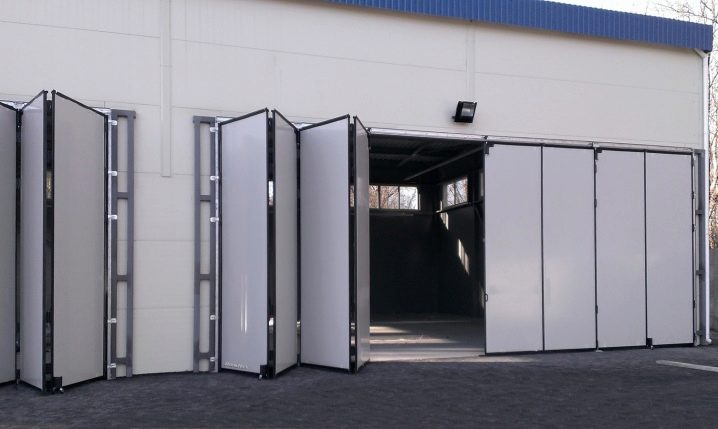 Die faltbare Art von Produkten gilt als die beste für die Installation auf privaten Gebäuden und Objekten der Großindustrie. Grundsätzlich werden Eingangsstrukturen an Objekten mit ziemlich breiten Öffnungen installiert, da Falttore im Freien nicht viel Platz einnehmen.