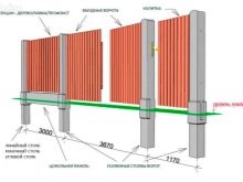 - Markierung des Gebiets und Vorbereitung der Löcher. All dies wird durchgeführt, wobei berücksichtigt wird, welches Material für die Ansaugabschnitte verwendet wird. Zur gleichen Zeit sollte die Tiefe der Gruben nicht weniger als 1 M. Es ist notwendig, Markierung von den Ecken des zukünftigen Zauns zu beginnen.