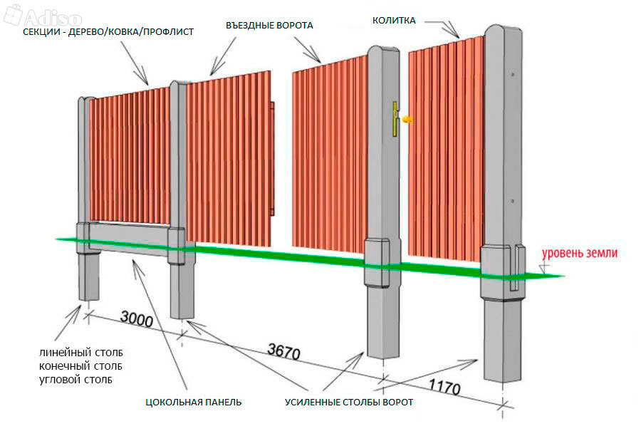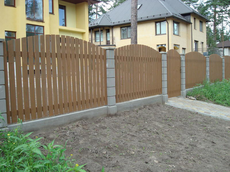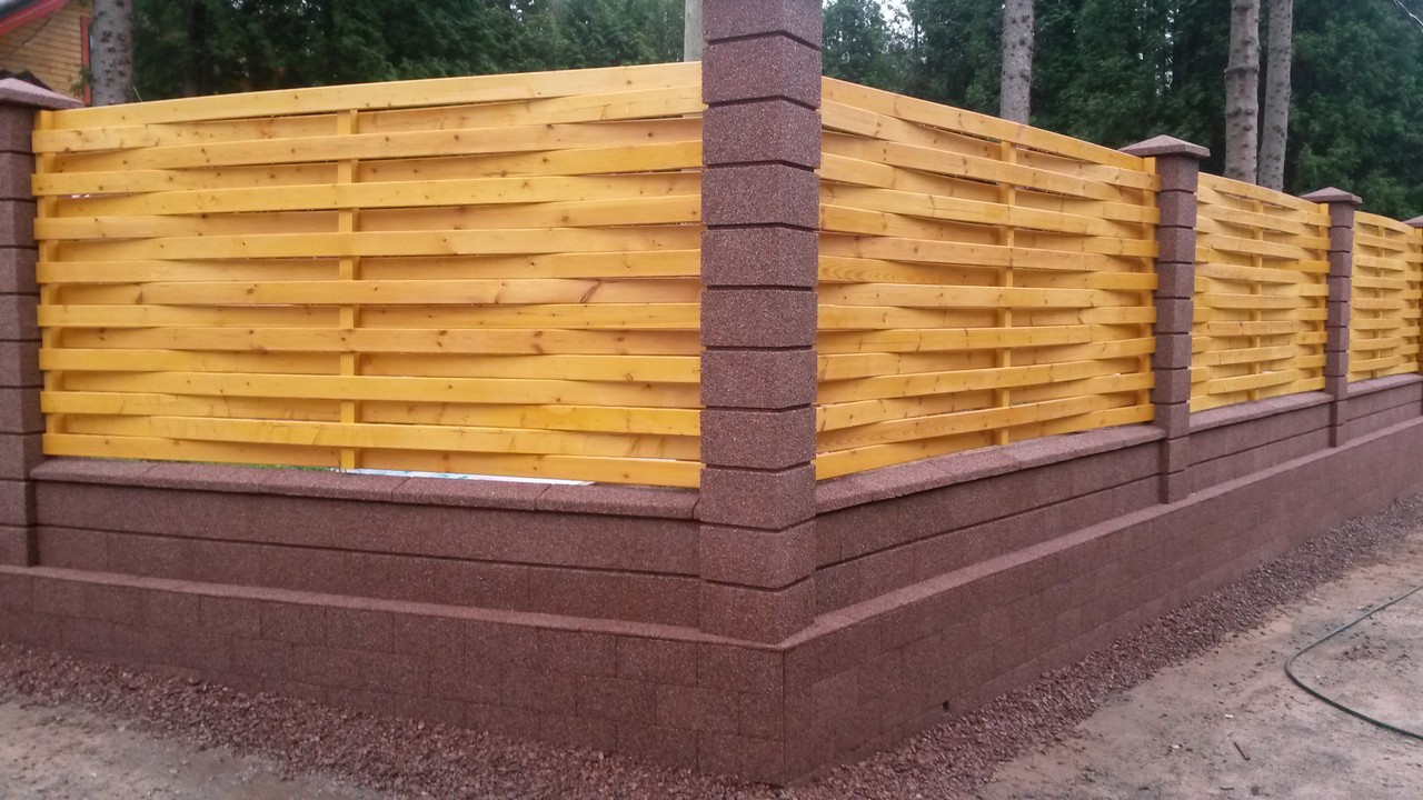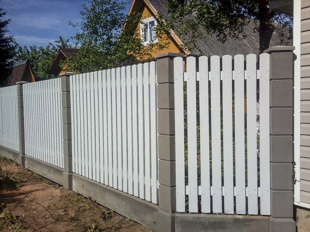 Aufgrund seiner technischen Eigenschaften und seiner Vielseitigkeit können Betonbasen verwendet werden, um Zäune aus beliebigen Materialien herzustellen. Meistens sind sie kombiniert mit: