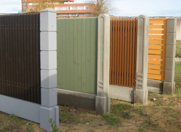 Die originellste Lösung sind die kombinierten Strukturen, in denen verschiedene Formen kombiniert werden. Egal welche Option Sie wählen, die Säulen sind gleich stark und halten zuverlässig die gesamte Struktur des Zauns.