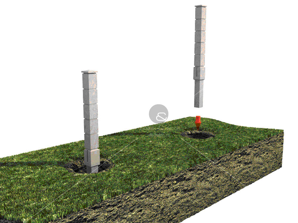 Bei den vorgefertigten Pfeilern sollte der innere Hohlraum bei der Montage ebenfalls mit Beton ausgegossen werden, um dem Fundament zusätzliche Stabilität und Festigkeit zu verleihen.