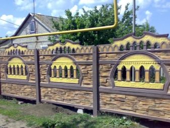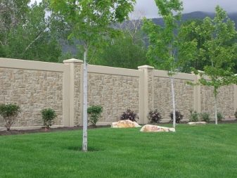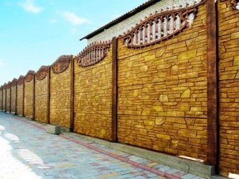 Viele Hersteller bieten die Produktion von modularen Elementen für die Montage von Zäunen auf Bestellung, so dass Sie die Möglichkeit haben, Ihr eigenes Lieblingsmuster zu wählen: unter Naturstein, Holz, Ziegel.
