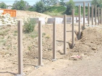 Am Boden der Grube sind die Abdichtungsschicht und ein Kissen aus Kies oder Kies angebracht, dann erfolgt das Gießen. Nachdem es erforderlich ist, ein paar Tage bis zum vollständigen Schrumpfen des Betons zu warten und erst dann mit der Installation des Zaunes fortzufahren.